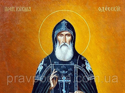 Преподобний Кукша Одеський. Ікона на дошці, шпон (ясен), шпонки, поліграфія, фарби, лак. Розмір: 160 х 120 х 16 мм. Вага: гр.