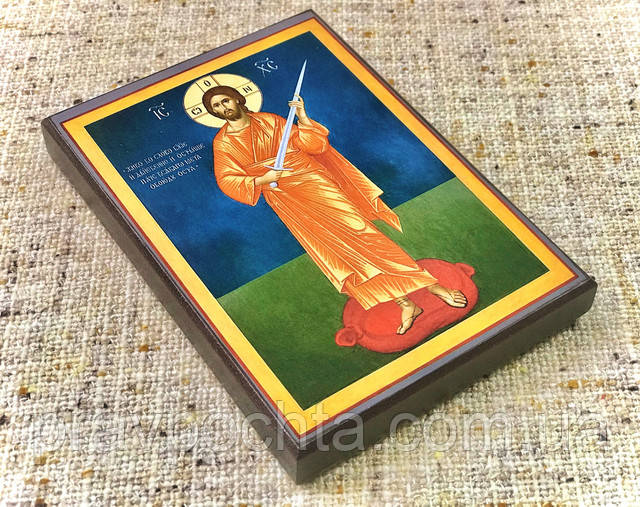 Ікона Христос з мечем (мала). Високоякісний друк, МДФ, шпон, лак в 2 шари. Розмір 160 х 113 х 16 мм Вага: 210 гр.