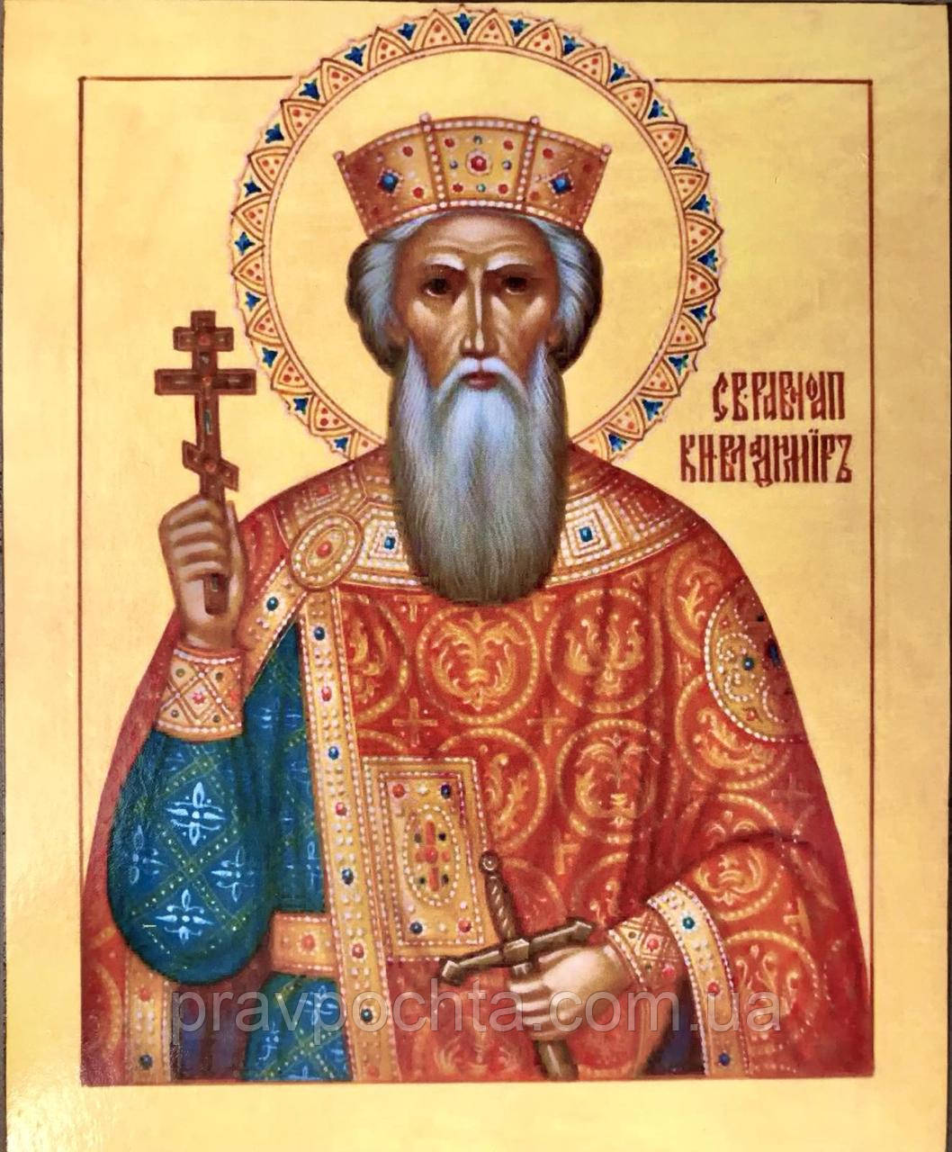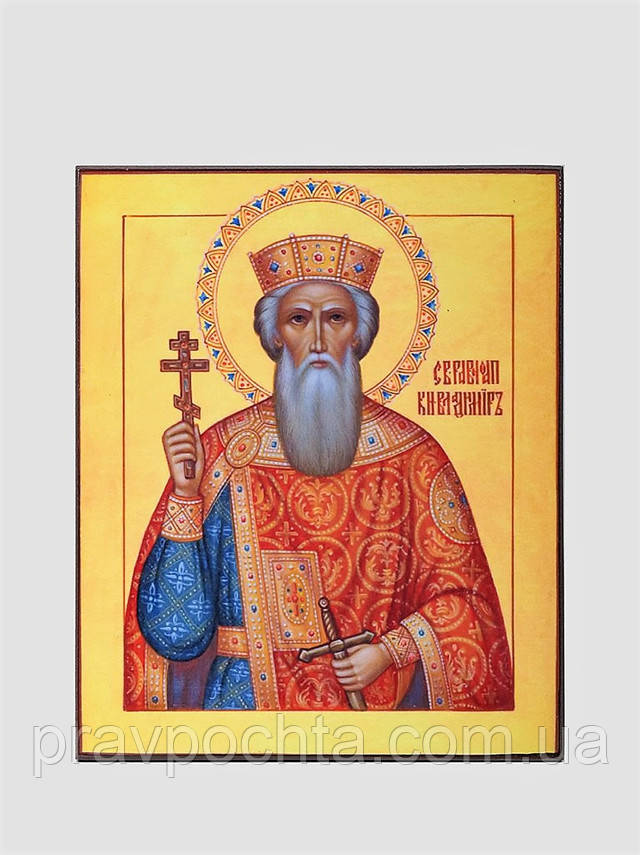Святий рівноапостольний князь Володимир. Ікона на дошці, шпон (ясен), шпонки, поліграфія, фарби, лак. Розмір: 200 х 150х 18 мм. Вага: гр.