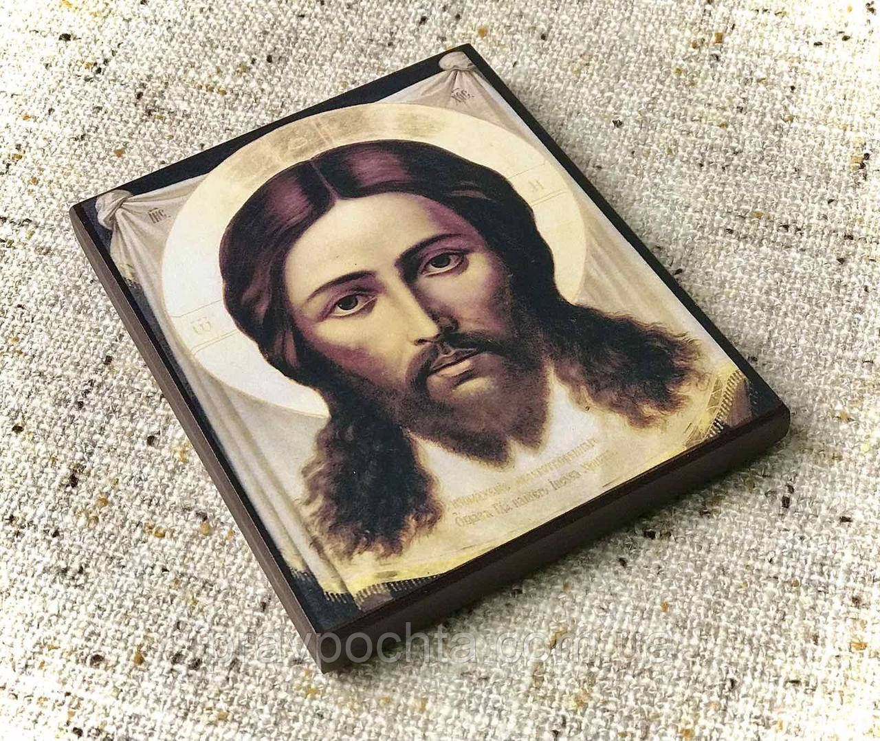 Ікона Ісуса Христа "Спас Нерукотворний". Ікона на дошці, шпон (ясен), шпонки, поліграфія, фарби, лак. Розмір: 160 х 120 х 16 мм. Вага: гр.